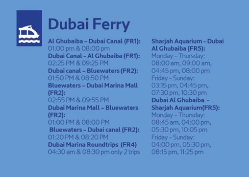 The Dubai Ferry Ramadan Timings 2024 have changed from standard timings, as per below.